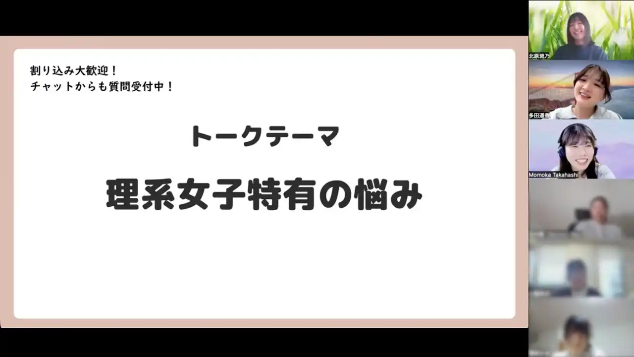 中学生から大学生までが参加した「理系女子が答えるお悩み相談会」の様子(2026年4月1日、オンライン開催) |