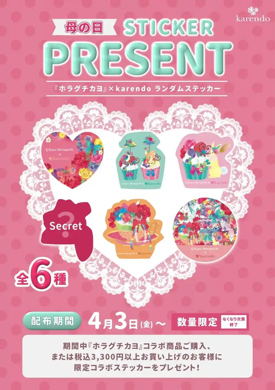 【店舗限定】「ホラグチカヨ」×karendoランダムステッカーをプレゼント |