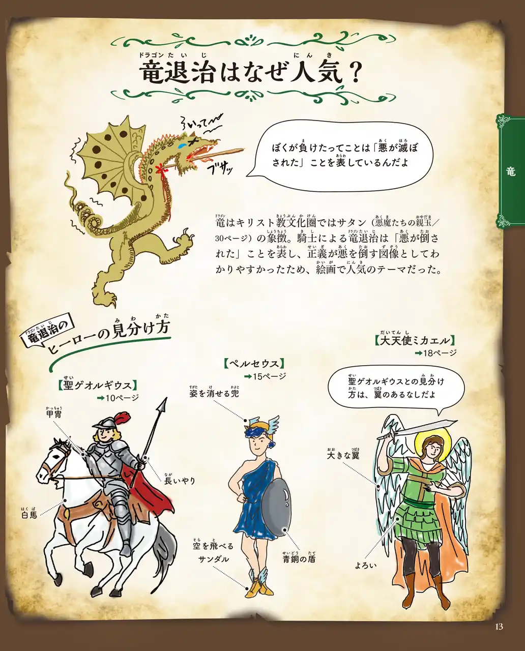 | 本書は、ドラゴンやメデューサなど、ゲームやマンガなどに登場するかいぶつたちを描いた西洋絵画と、そのかいぶつたちの物語をマンガで解説する本です。 | |||