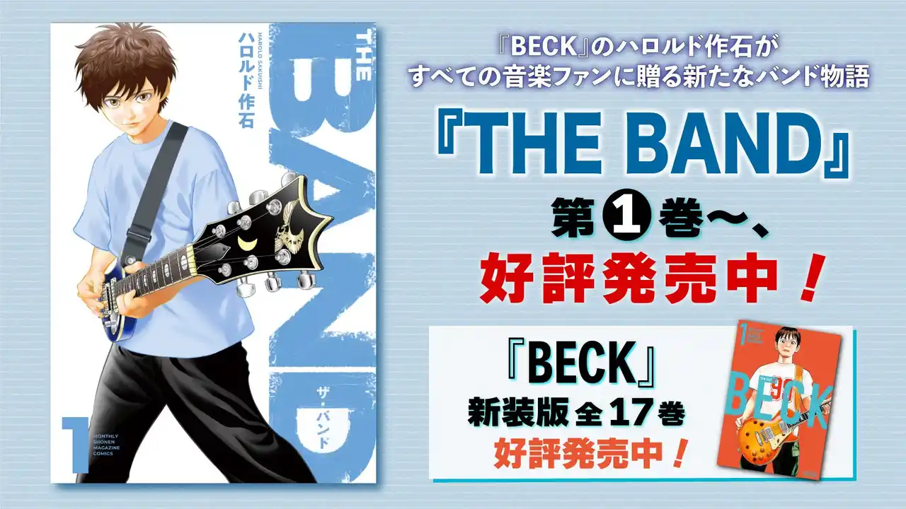 | 人気マンガ「ゴリラーマン」「BECK」などで知られる、ハロルド作石先生による最新作「THE BAND」第4巻が4月16日発売!これを記念して、講談社が運営するYouTubeチャンネル「フル☆アニメTV」にて、TVアニメ「BECK」全26話を一挙無料配信いたします。本日4月3日から5月31日までの期間限定配信となりますので、最新作「THE BAND」と一緒にぜひお楽しみください! | |||