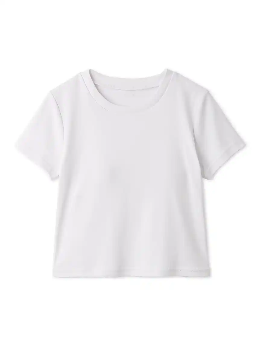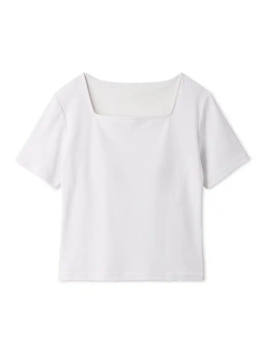 持続冷感ポリエステル「エバークール」素材を使用したカップインTシャツ。 鎖骨が見えないデザインの衿ぐりで首元をすっきりと見せ、上半身をコンパクトで華奢な印象に仕上げました。 |
