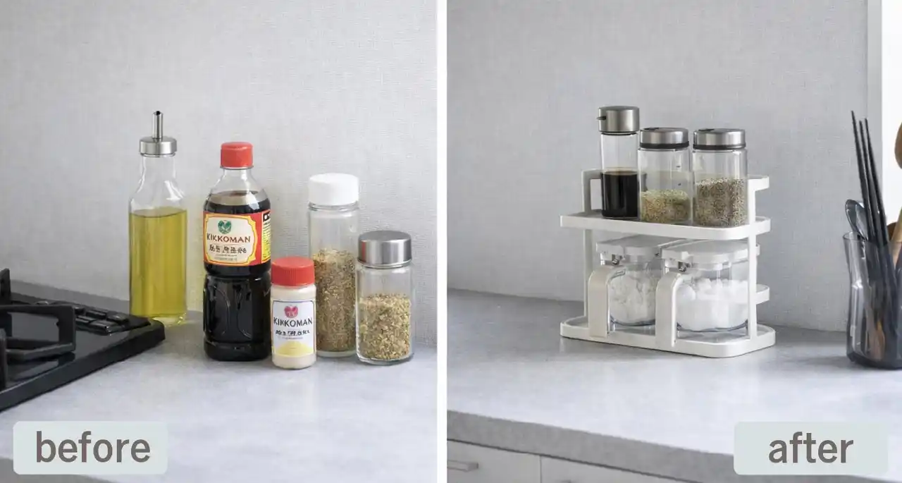キッチンに“定位置”が生まれることで、 調味料収納のストレスを減らし、料理の時間をもっと快適にします。 |