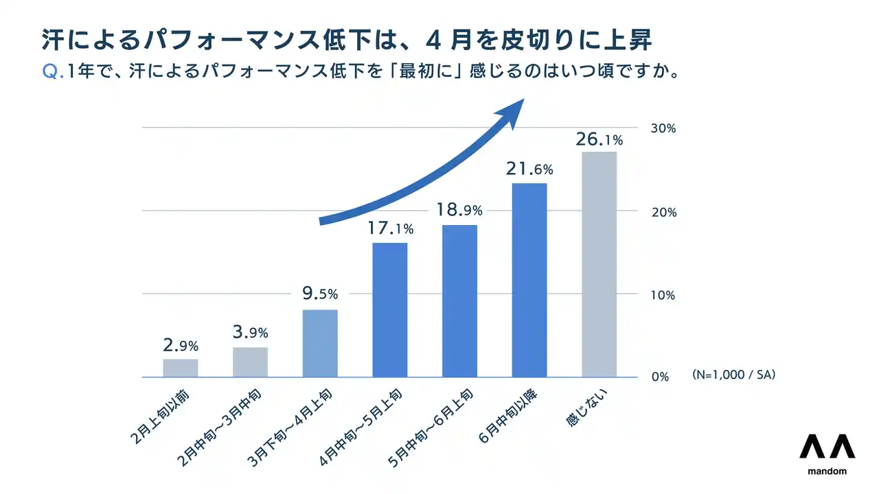 2.汗によるパフォーマンス低下を最初に感じる時期も「4月」が起点に。