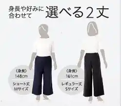 ショート丈は足元を軽やかに見せ、すっきりとした印象に。レギュラー丈は自然なバランスで着用しやすく、落ち着いた着こなしにもおすすめです。 |