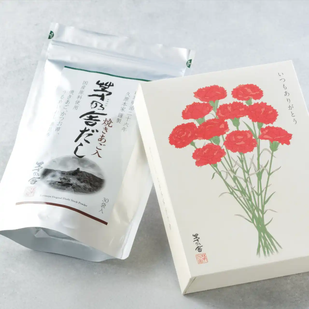 母の日限定パッケージの茅乃舎だし。プチギフトにおすすめです。 |