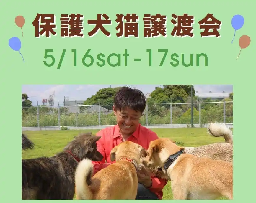 保護犬猫譲渡会の2026年5月16日(土)、17日(日)は、 |