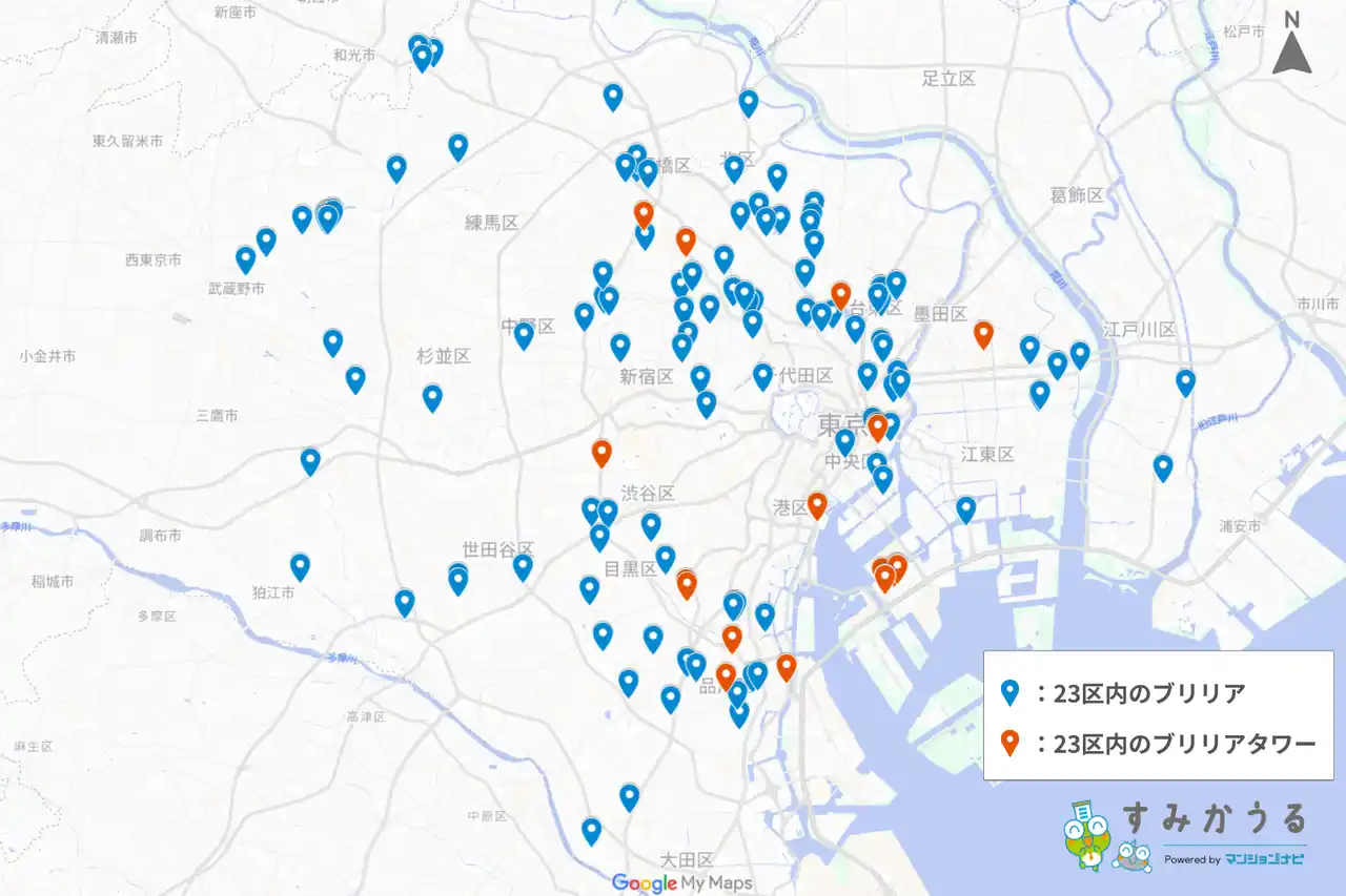 東京23区内におけるブリリアシリーズの分布データを分析すると、ターゲット層に合わせた明確な立地戦略が見えてきます。 |