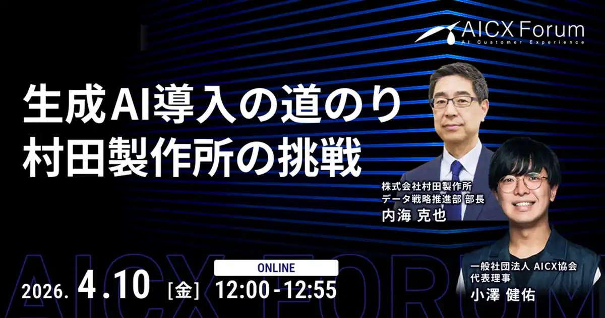 一般社団法人AICX協会(東京都、代表理事:小栗 伸/小澤 健祐、以下、AICX協会)は、2026年4月10日(金)12:00~12:55、AICX Forum「生成AI導入の道のり 村田製作所の挑戦」を開催します。 |