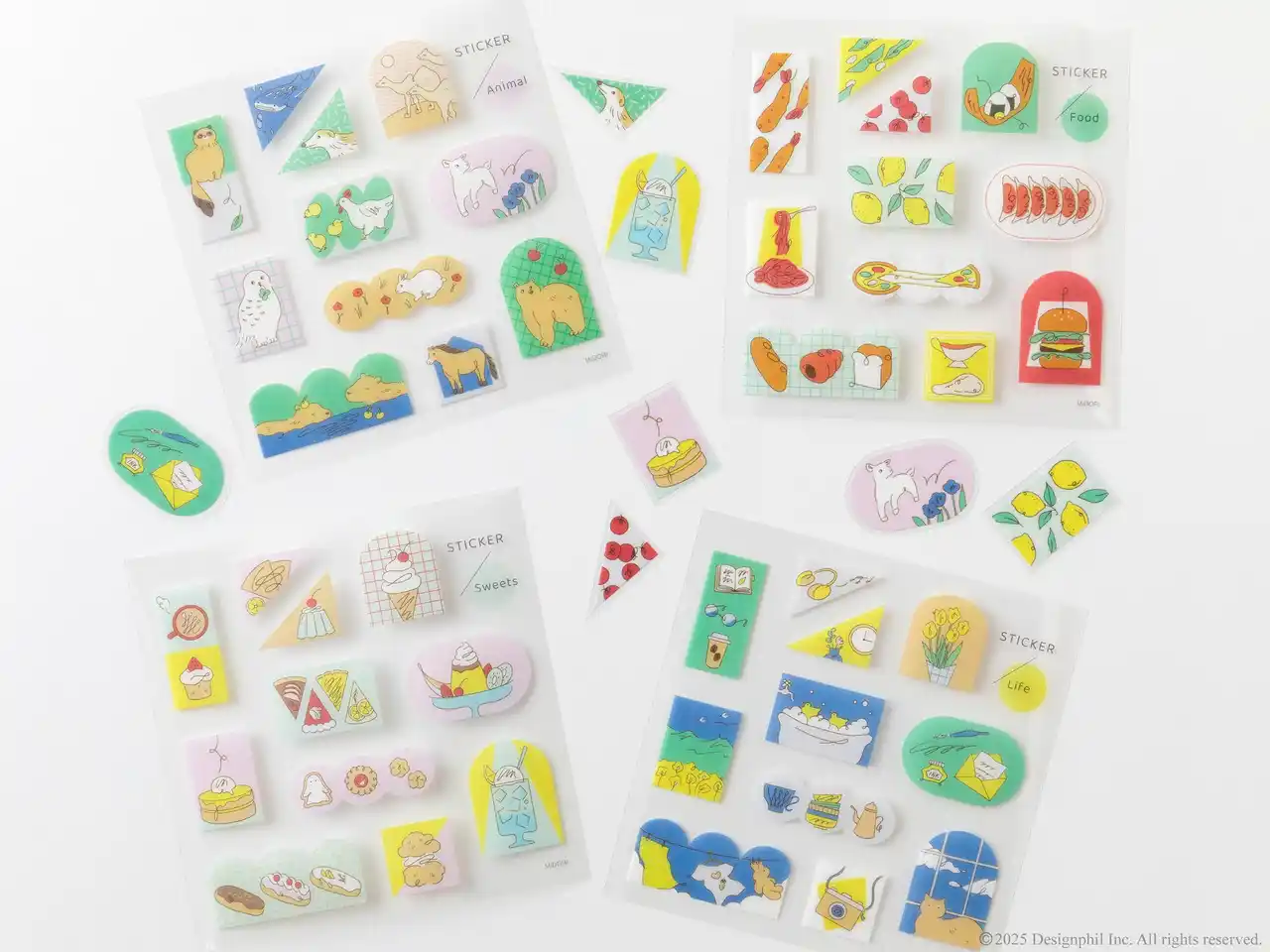 ノートや持ち物をデコレーションできるクリア素材のシール。日常やおでかけの中にある、ワクワク感たっぷりなモチーフをテーマに描いています。鮮やかな色のシールは貼るだけで気分が上がる!ブース内の機械のレバーを回すとシールがランダムで1枚出てきます。どのデザインが出るかお楽しみに! |