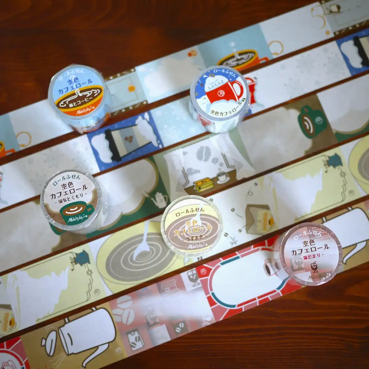 カフェ×天気がテーマのロールふせん5本セット。晴れ・曇り・雨・雪・風の5つの空模様をモチーフにしたデザインです。このロールふせんで手帳をデコレーションすれば、どんなお天気の日も特別な1日に♪ オリジナル缶入りで、使用後は小物入れとしても楽しめます。 |