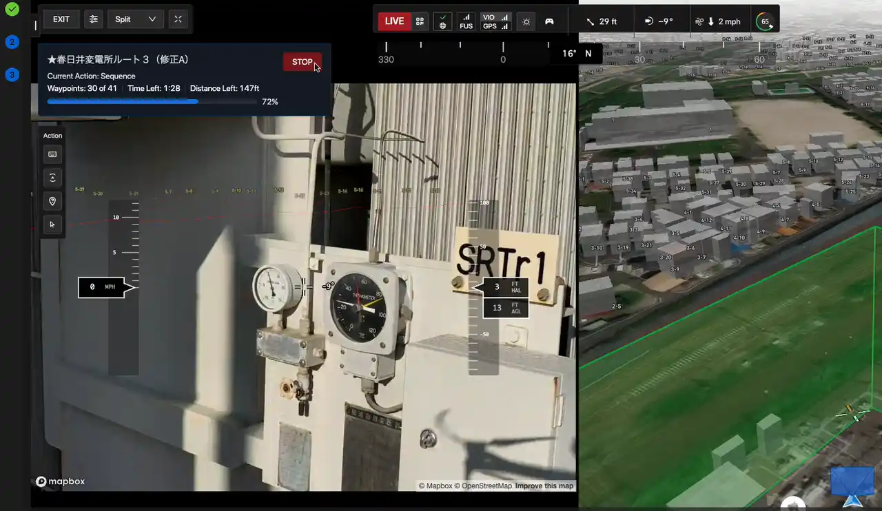 鉄道の変電所構内の環境下において、安定した自動運航が実現可能であること、また主要設備および計器類における、目視点検の代替を見据えた撮影が実施できることを確認しました。加えて本実証実験では、遠隔運航における運用方法の検討や、関係者との調整および飛行申請や関連法規制においても整理を行うことで、技術検証に加えて実運用を想定した検討を実施しました。 |