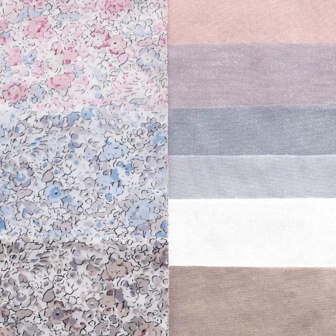 | 一方、ラメブロード生地については、カルトナージュで使用する柄生地と組み合わせるためのラメ生地を探していた中で、過去に株式会社MY mamaが取り扱っていた素材と一致したことがきっかけとなり、協業へと発展しました。 | |||||||||||||||