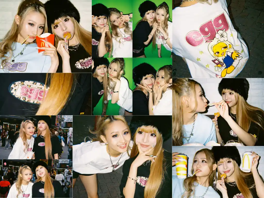 今回のコラボレーションでは、#FR2のアイコニックなデザインと、eggが誇るギャルカルチャーのエッセンスが融合。メインビジュアルには、今のギャルシーンを牽引するeggモデルのあいさと伊藤愛依海(あいみん)を起用し、唯一無二の世界観を表現しています。 |