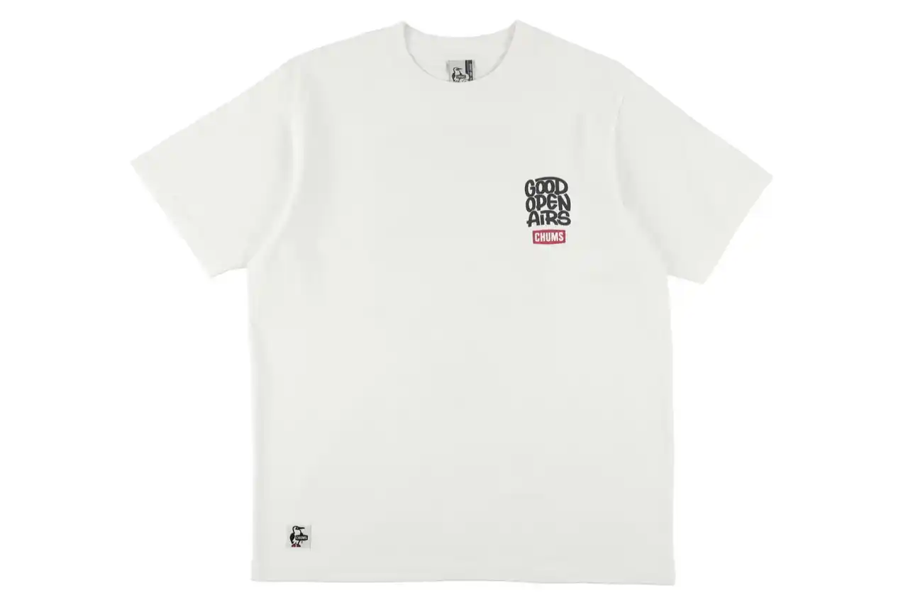GOOD OPEN AIRSのロゴを囲むように、キャンプやフィッシングなど、myXを象徴するアウトドアアクティビティの世界にブービーバードが入り込んだイラストデザイン。 背面にイラストを大きく配し、前面にはGOOD OPEN AIRSとCHUMSのロゴをあしらっています。 |