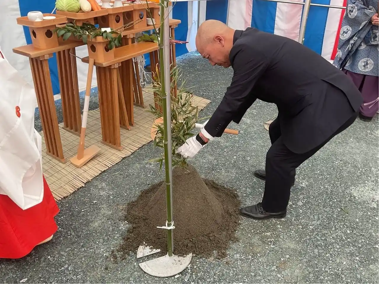【2026年3月5日に実施した地鎮祭の刈初の儀の様子】 |