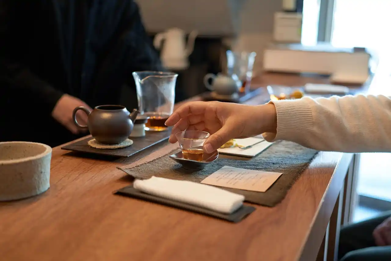 ◯西氏がセレクトしたお茶を、オリジナルの方法で入れて頂きます。 |