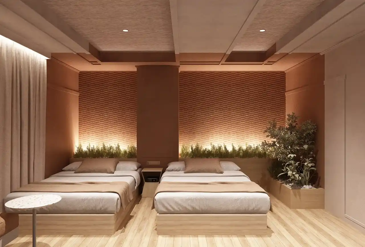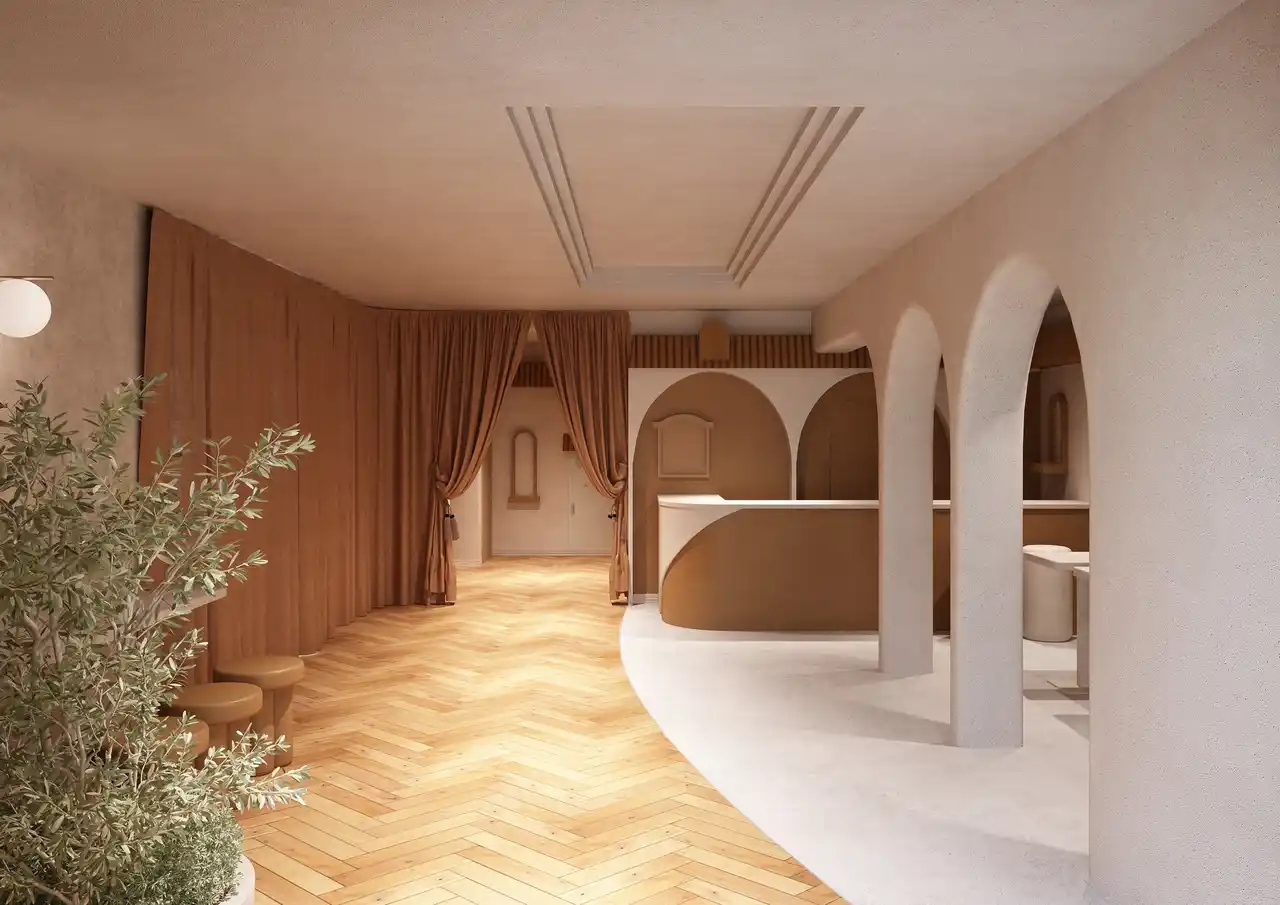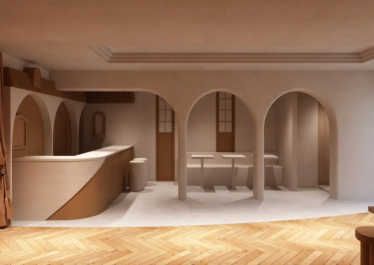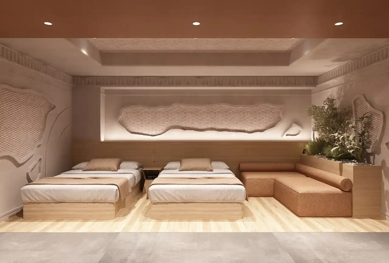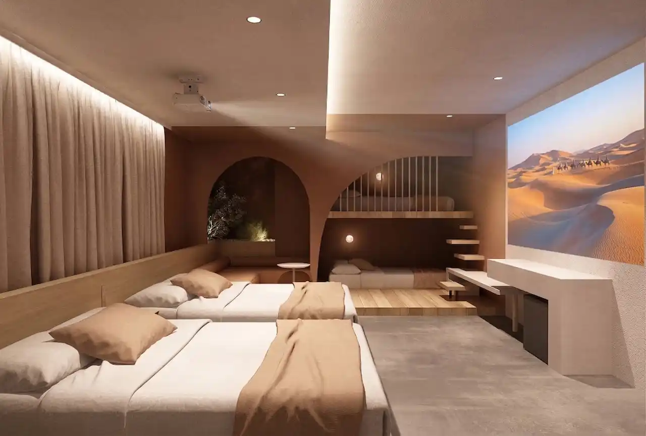 館内デザインは、モロッコの砂漠の風景から着想を得ています。やわらかな曲線、落ち着いた土の色合い、そして静けさを感じさせる空間構成が、日常から少し離れた穏やかな滞在を演出します。 |