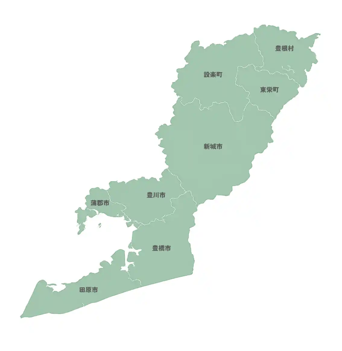 8つの市町村で構成されている東三河 |