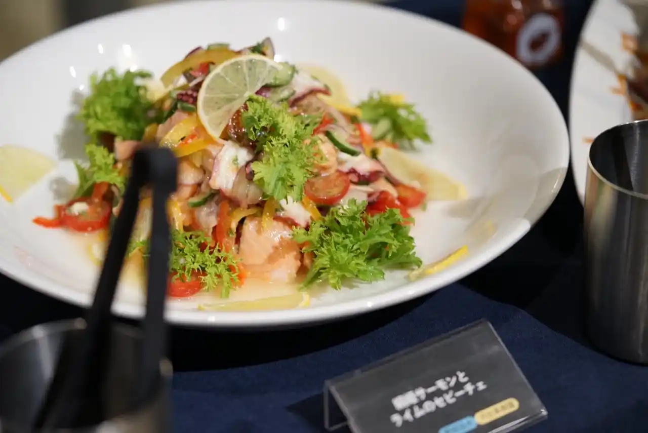 絹姫サーモンとライムのセビーチェ(愛知県淡水養殖漁業協同組合・河合果樹園) |