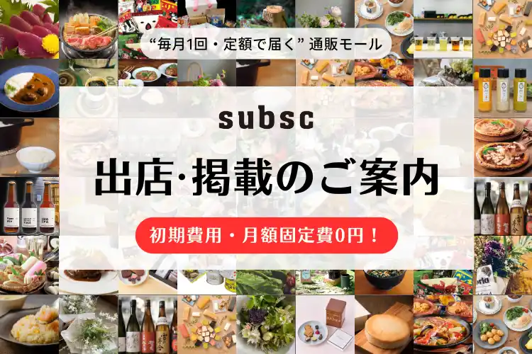 サブスク/定期便専門のオンラインショッピングモール subsc(サブスク)では現在、出店ストア様を募集しております。 「初期費用無料」「固定費無料」にてご出店・掲載いただくことができます。 |