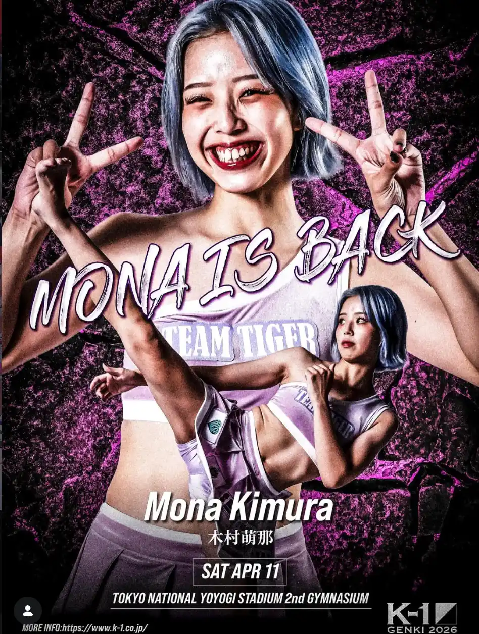 4月11日(土)に開催される『K-1 GENKI 2026』(東京・国立代々木競技場第二体育館)の[K-1女子フライ級/3分3R・延長1R]でチェ・ウンジ(韓国/大邱FEARLESS GYM) と対戦する木村萌那(日本/K-1ジム目黒TEAM TIGER : IG https://www.instagram.com/mona_world412/ ) がインタビューに応じた。 ――久しぶりの記者会見は、いかがでしたか? 「えー、緊張しました」 ――緊張しているようには見えませんでした。 「久々と言っても、初めてのようなもんじゃないですか。K-1の会見は、Krushとはまた全然違うんで」 ――たしかに、そうですね。服装やヘアスタイルも奇抜でよかったです。 「本当は、デニムの普段着で出ようと思っていたんですけど。いろいろな意見があって、ヘアスタイルも変わった感じにしました」 |