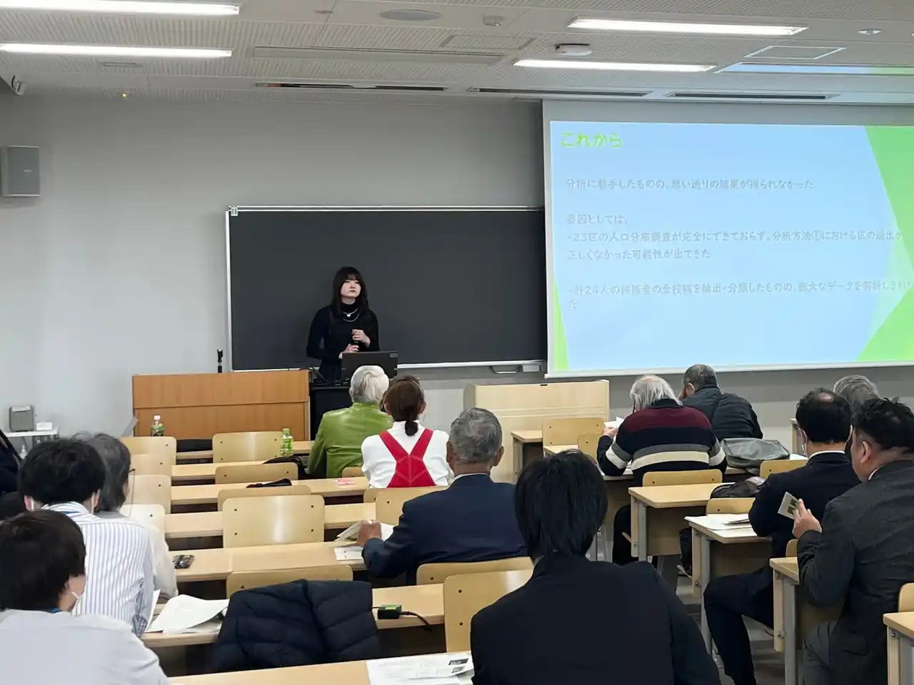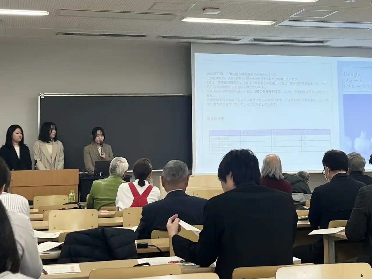 2025年度の成果発表会は、本来1月21日に「江東区明るい選挙推進委員後期教養講座」にて実施予定でしたが、衆議院解散に関する報道を受け、延期となりました。その後、今回のような形で開催することができ、学生たちの充実した研究発表を多くの方にご覧いただけたことを大変嬉しく思っております。 |
