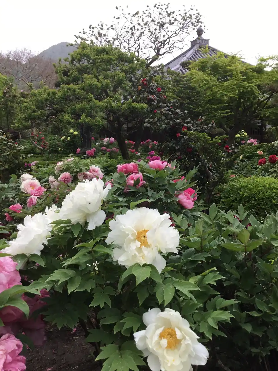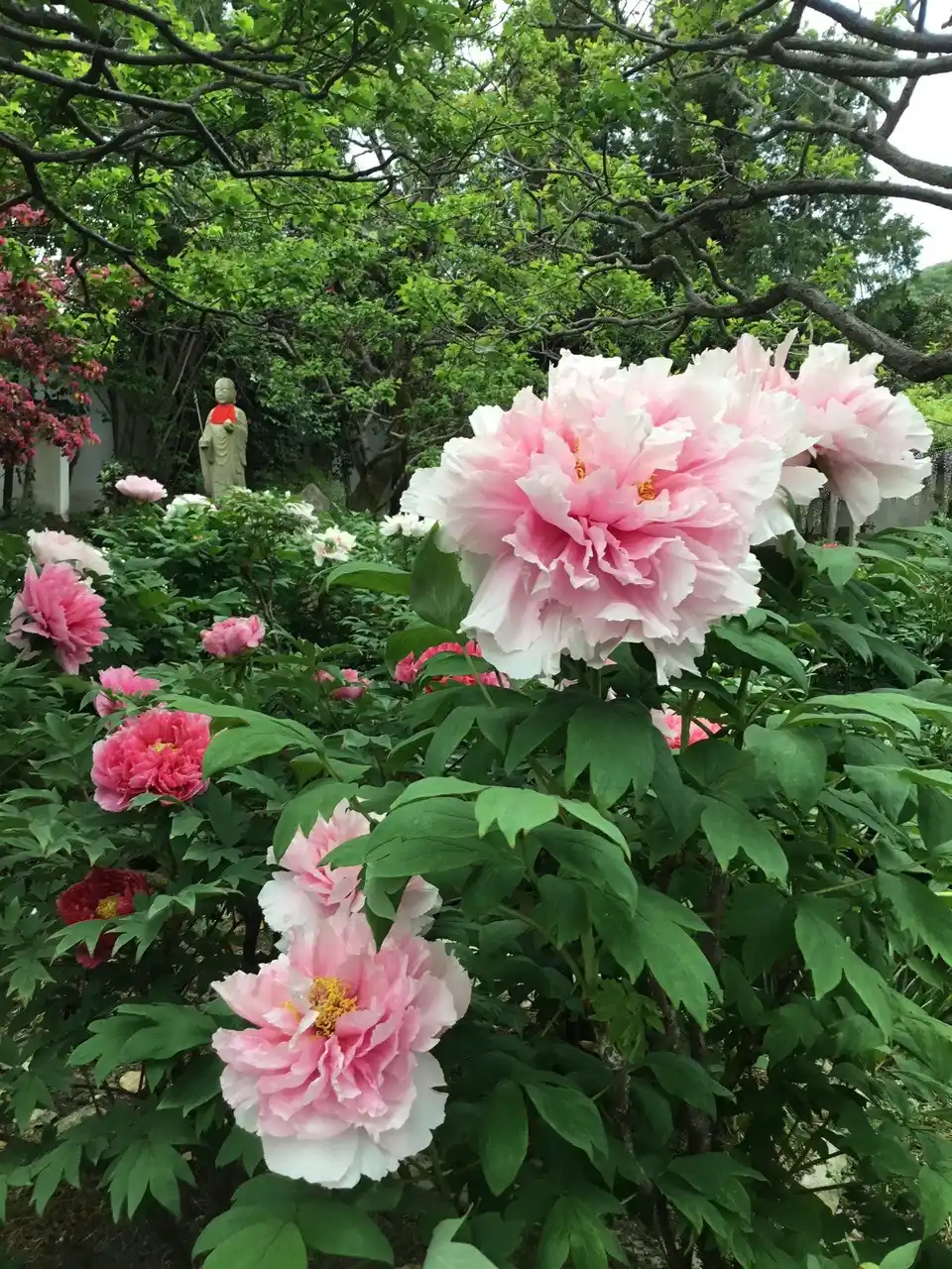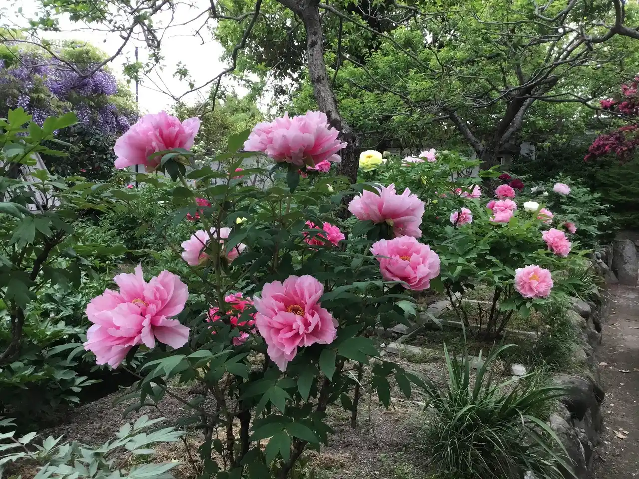 戦前から「牡丹寺」として知られていましたが、第二次世界大戦中に軍の施設として使われたために、牡丹の庭園が荒らされてしまいました。そのため、牡丹の株を檀家の畑に移しましたが、混乱の中で貴重な品種が失われました。 |