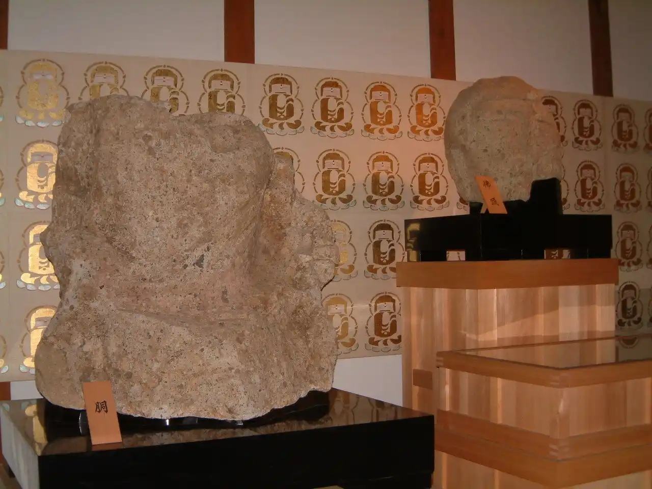 平成3年に長い歴史のなかで所在がわからなくなっていた石仏が発掘されました。組み立てれば2メートル以上もあり、凝灰岩を丸彫りした仏様は白鳳時代以前には例がないということで「日本最古の石仏」といわれています。 |