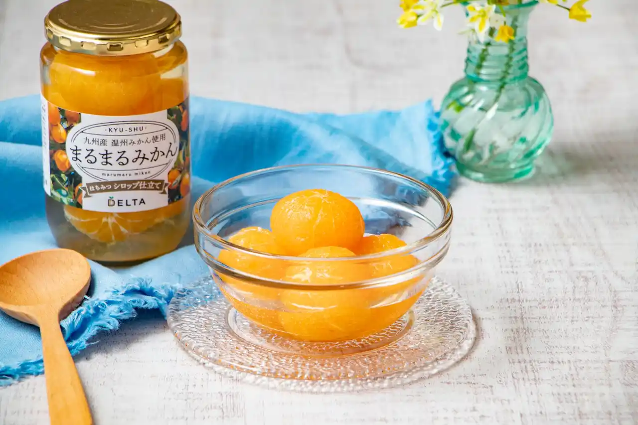 ナッツとドライフルーツの専門商社、株式会社デルタインターナショナル(本社:東京都品川区、代表取締役社長:鳥海 敬)は、九州産温州みかんを丸ごと瓶に詰め込んだ『まるまるみかん』を数量限定で発売いたします。本商品は、サイズが小さいものや外皮のキズ等により生果として出荷できない規格外のみかんを、一つひとつ丁寧に手むきし、果肉を崩さず丸ごと加工したアップサイクル商品です。 |