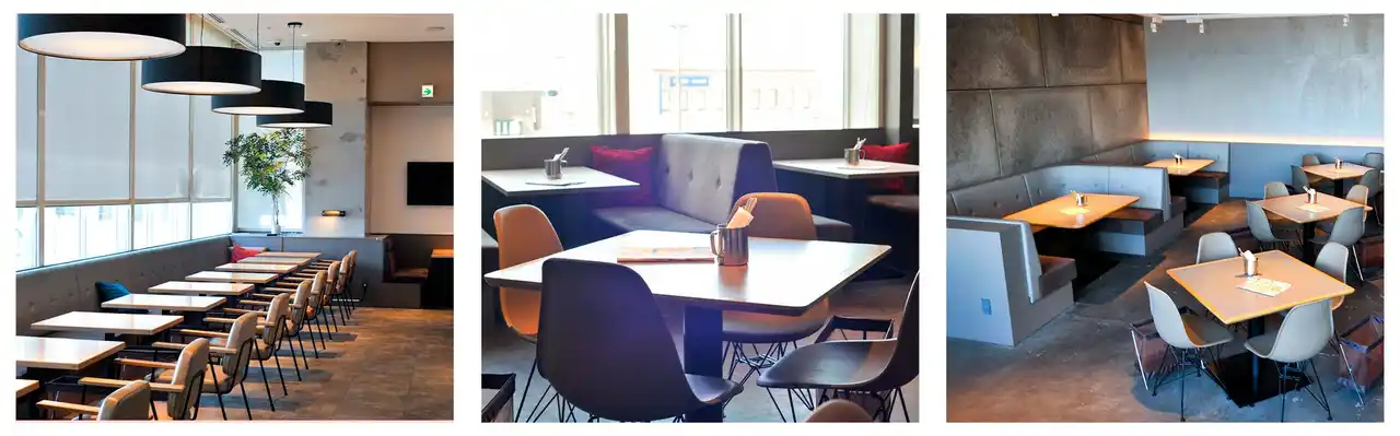 店内で焼き上げたパンをビュッフェ形式でお楽しみいただけるカフェです。お子さま連れでも安心してご利用いただける、ゆったりとしたソファ席やキッズチェアもご用意しております。 |