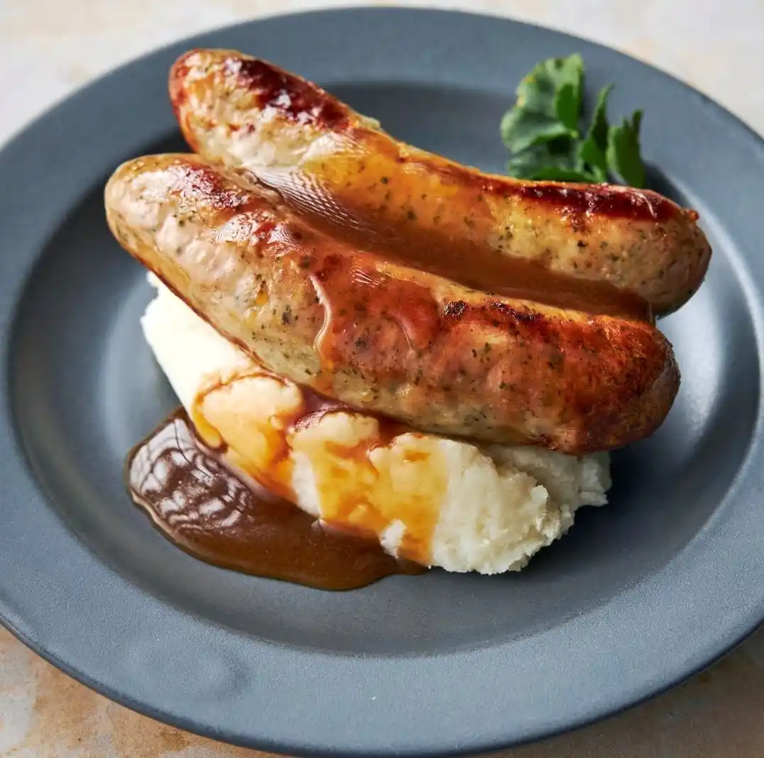 西ヨークシャーの温泉街イルクリーにある「全英ブッチャーショップ・オブ・ザ・イヤー2025」で優勝したブッチャーショップ。ジュワッと広がる肉汁とパリパリの皮がクセになるソーセージは「イングリッシュブレックファースト」に欠かせない一品です。 |