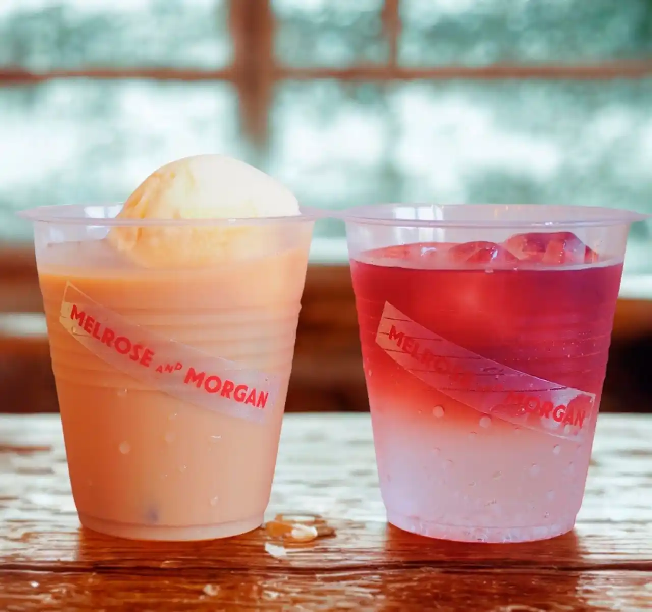 (左)ミルクティーフロート(1杯)748円 濃厚なミルクティーに塩ミルクアイスを浮かべました。(右)ベリー・ティーソーダ(1杯)594円 甘い香りと程よい酸味が楽しめるノンカフェインのティーソーダ。 |