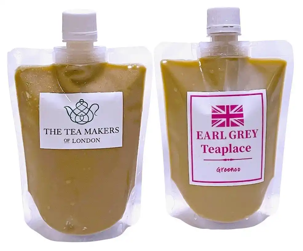 (左)「ザ・ティーメーカーズ・オブ・ロンドン」アッサムガーデンミルクティー(260ml)770円 マンジュシュリー茶園の茶葉を使用。 (右)「アールグレイティープレイス」アールグレイミルクティー(260ml)748円 柑橘香るアールグレイ。 [いずれも各日限定50] |