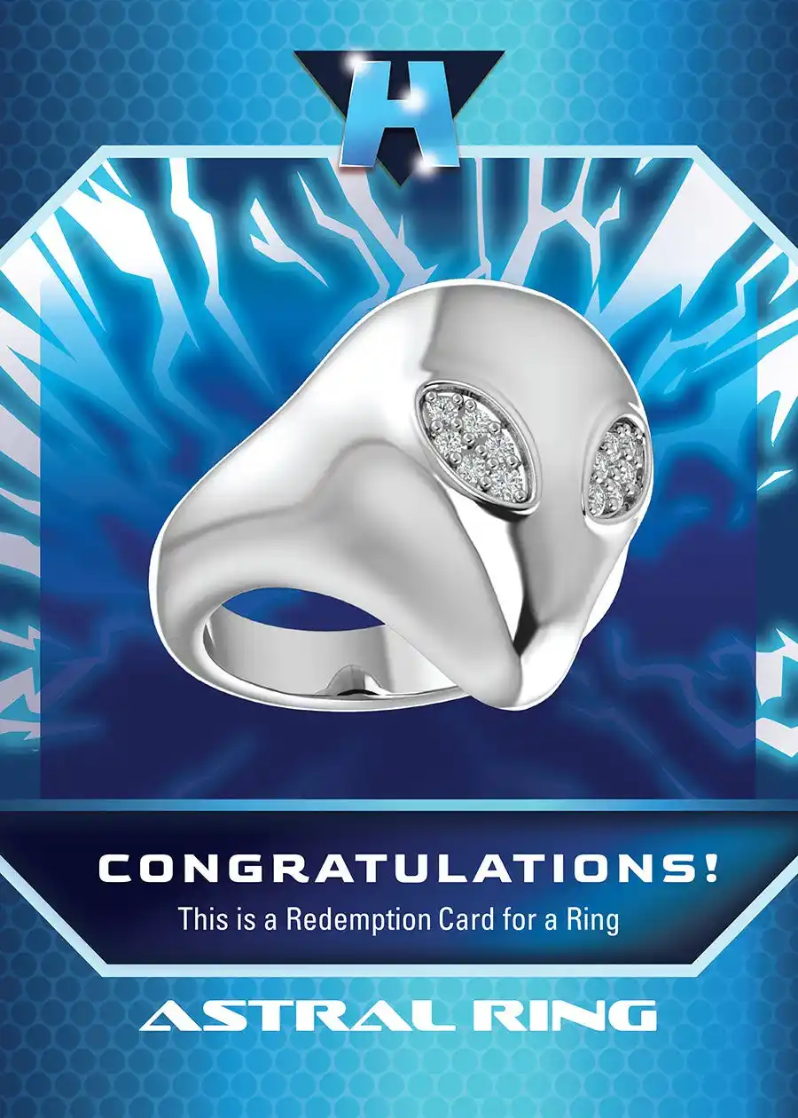 そして同様に注目度が高いのが、「Ring Redemption Card」で、なんと実際の「HiROQUEST」アーティファクト(指輪)と交換できる特別なカードとなっています。コレクターにとって大変な価値があるカードとなるでしょう。 |