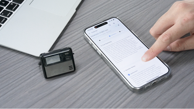 「AuralAI」は電源オンなど複雑な操作は一切不要、録音したいときは本体の録音ボタンを上へスライドするだけ!いつでもどこでもワンタッチで録音を開始できるので、重要な会話からふと思いついたアイデアまで逃さずに記録できます。録音のチェックや再生なども必要最低限の操作で行うことが可能なので、初心者でも簡単に扱えます。 |