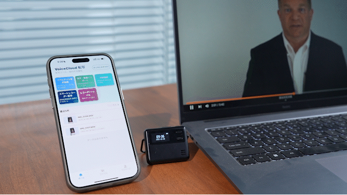 「AuralAI」で録った録音ファイルをアプリにアップロードすることで、音声を認識し自動でテキストに変換。最大100種類の言語に対応しているので、ひらめきを声にして瞬時に記録できるのはもちろん、国際会議の議事録や外国語での講義のメモ作成にも重宝できます。 |