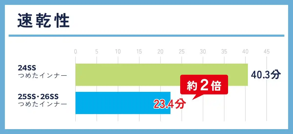 乾くスピードが約2倍で、かいた汗を素早く乾かし、身体の熱を逃がします。 |