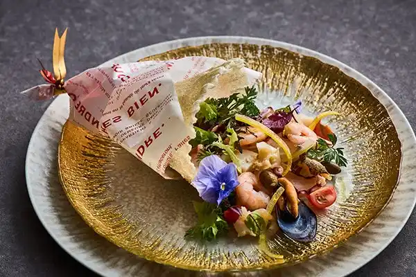 オードブル:魚介のサラダ“フラワーブーケスタイル” |
