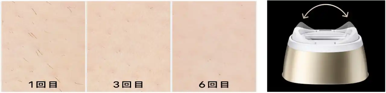 自宅でのお手入れを、より効果的かつ手軽に行うため、新たに「スマートフレックスヘッド」を搭載。これにより、従来モデル以上に、照射がしづらい凹凸のある部位にもフィットしやすく、照射漏れを防ぎながらスピーディーに照射し、最短でツヤすべ肌*2を実現します。 |