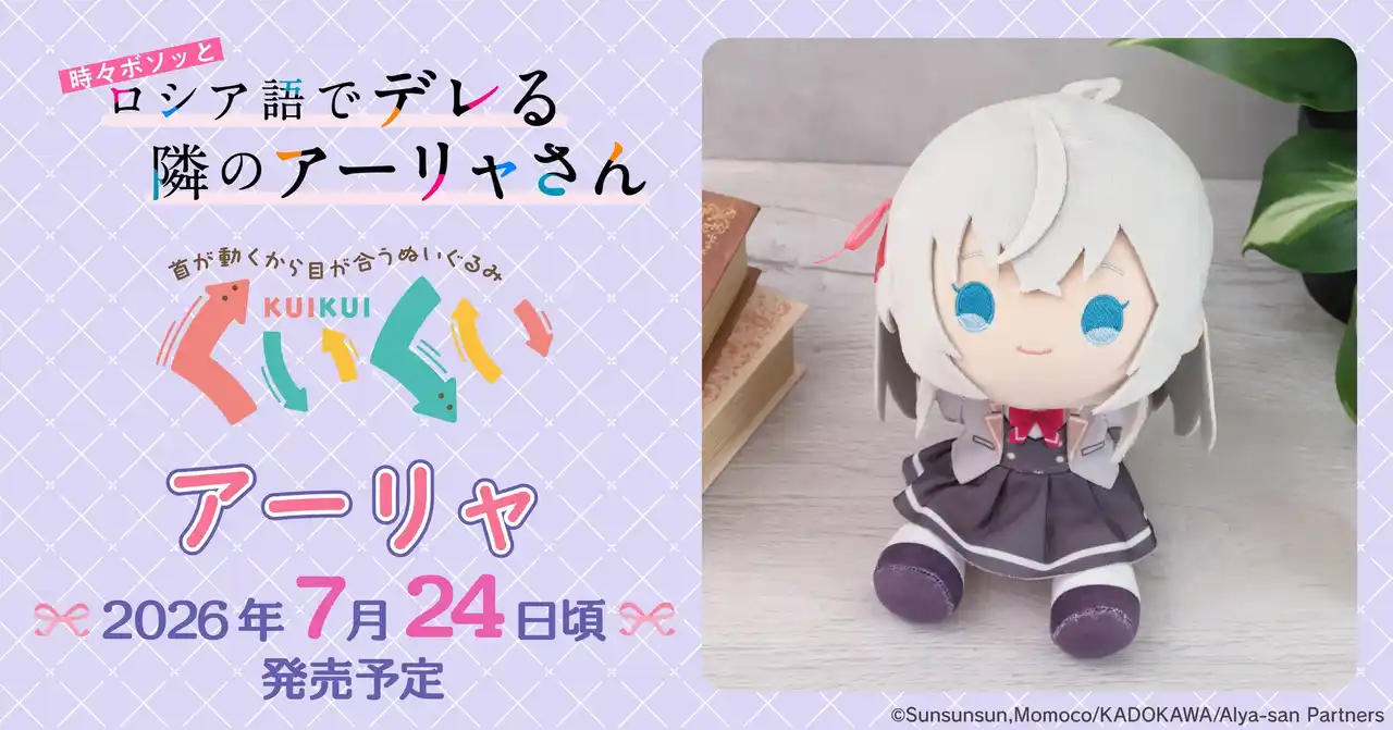 アーリャさんが「くいくい」になって登場!「くいくい」とは、首がくいっと曲がるお座りぬいぐるみ。あなたを優しく見上げます。目が合いやすい角度でデスクの上に置いたり、お出かけ先でポーズをとって撮影したり…自由で癒しの時間をお届けします。 |