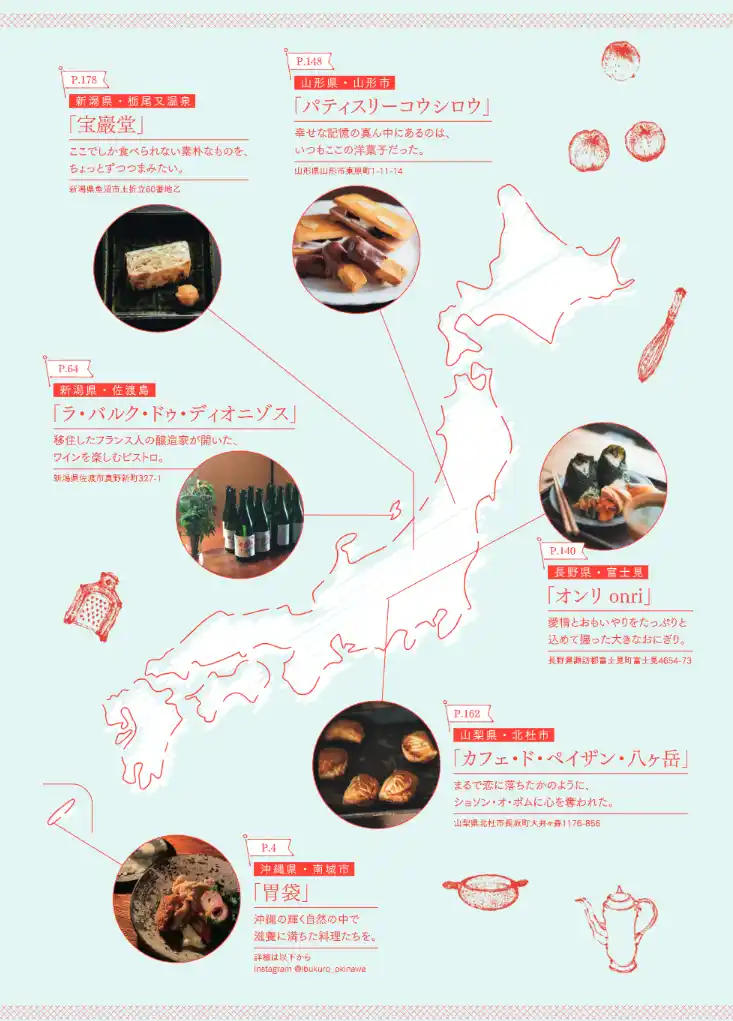 | 『食堂巡礼』の旅を終えて料理に携わる、尊い生き方をするたくさんの方に出会えたこと。そのことが、私を心から豊かで明るい気持ちにしてくれた。お忙しい中、取材を受けてくださった皆様に、心からの感謝を申し上げます。本当にありがとうございました。そして、ごちそうさまでした。 | |||||||||||||||