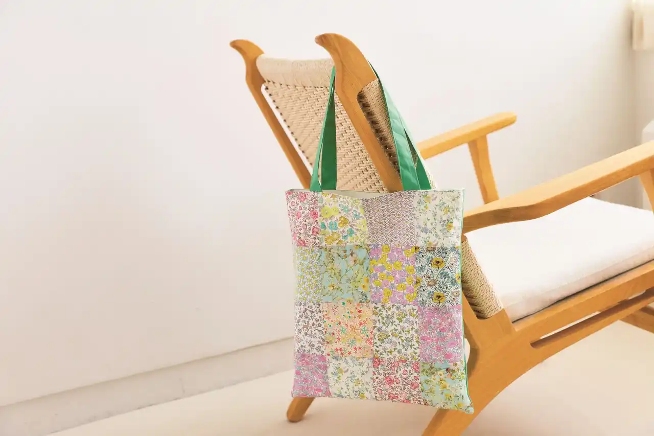 出来上がったグリーンリーフのパッチワークトート。 |
