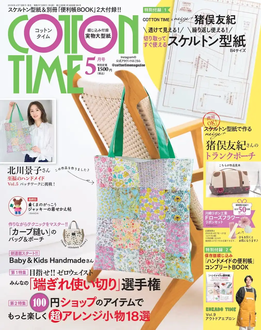 手芸作品のX投稿が話題沸騰、腕前も評判の北川景子さん。現在は隔月刊手芸雑誌『COTTON TIME』にて「北川景子さんの至福のハンドメイド」を連載中。最新号では、初夏に映える、グリーンリーフのパッチワークトートを作りました。 |