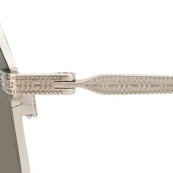POINT 01:フロントやテンプルには、矢羽根(ARROW)をモチーフにした美しく繊細な彫金をデザイン。(ZF263G01_14F1) |