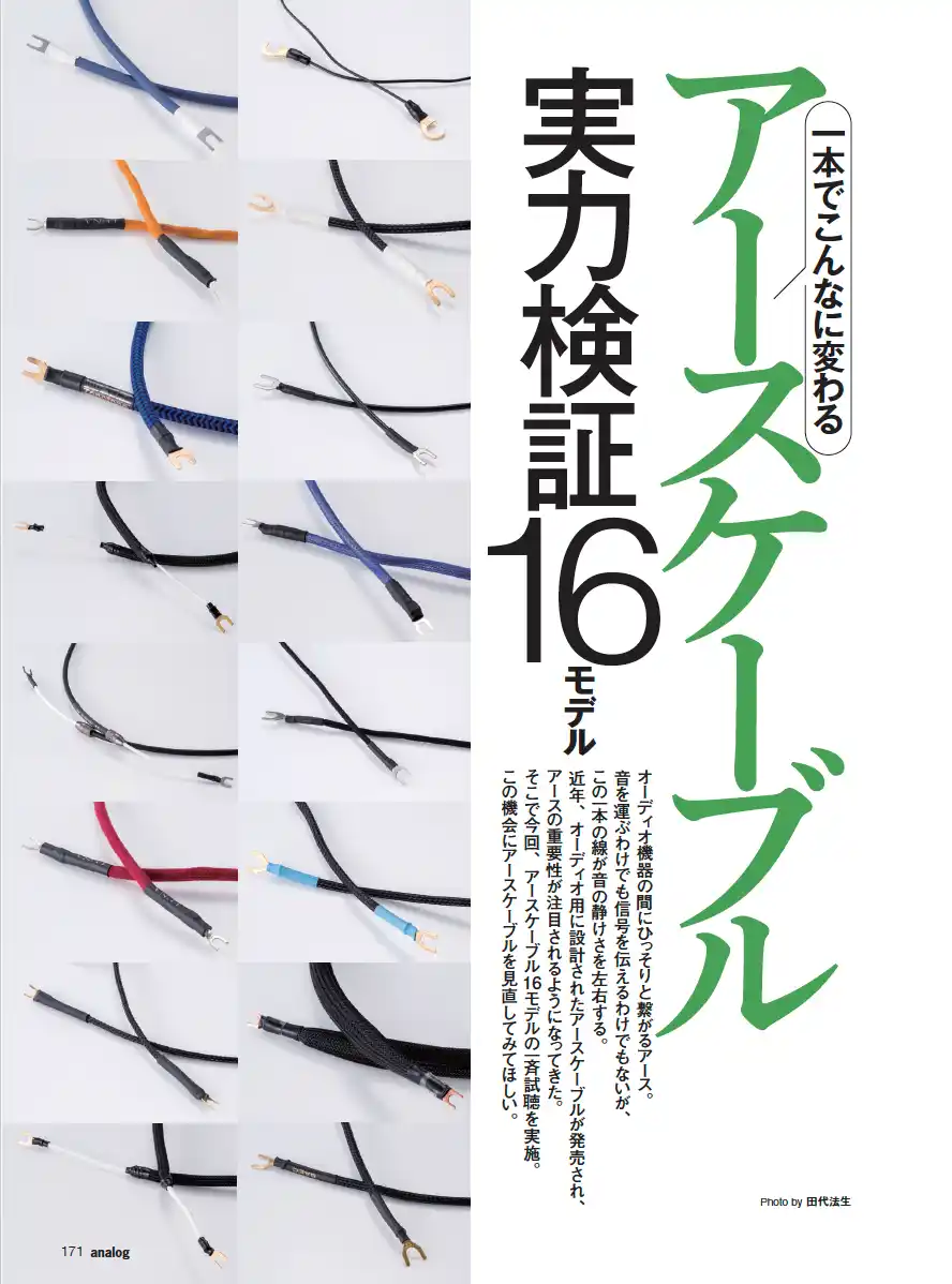 | レコード再生において必須のアイテムであるアースケーブル。これまでは「単に接続しておけばよい」と思われていた地味な存在でした。しかし仮想アースなるものの浸透でオーディオグレードモデルが次々に登場し、アースケーブルがレコード再生においても音質に大きく関わることに注目が集まっています。そこで今回は、16モデルを一挙に試聴。ハムノイズを防ぐのみならず、一本でこんなに変わる! と感動もののアースケーブルの世界をお楽しみください。(試聴・執筆 炭山アキラ) | ||||||||||||||||||||||||||