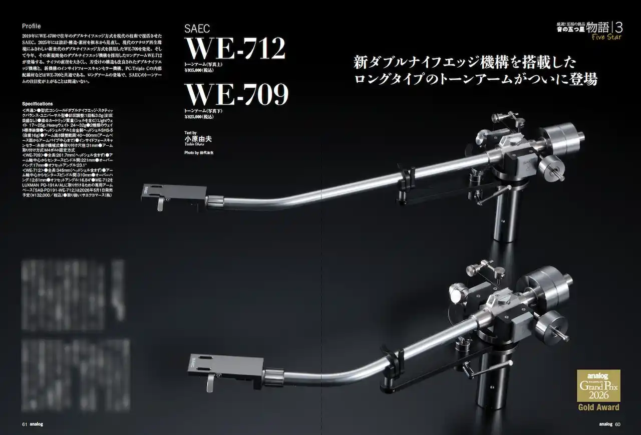アナログオーディオに特化した注目のアワード「アナロググランプリ2026」、授賞結果発表と授賞モデルの試聴レポートを始め、キース・ジャレットの傑作『ザ・ケルン・コンサート』とクラシック・ピアニストの山口ちなみによる再現作品を聴くオーディオシステムプランの紹介、アースケーブルの実力検証レポートなど、盛り沢山の内容をぜひお手に取ってご覧ください。