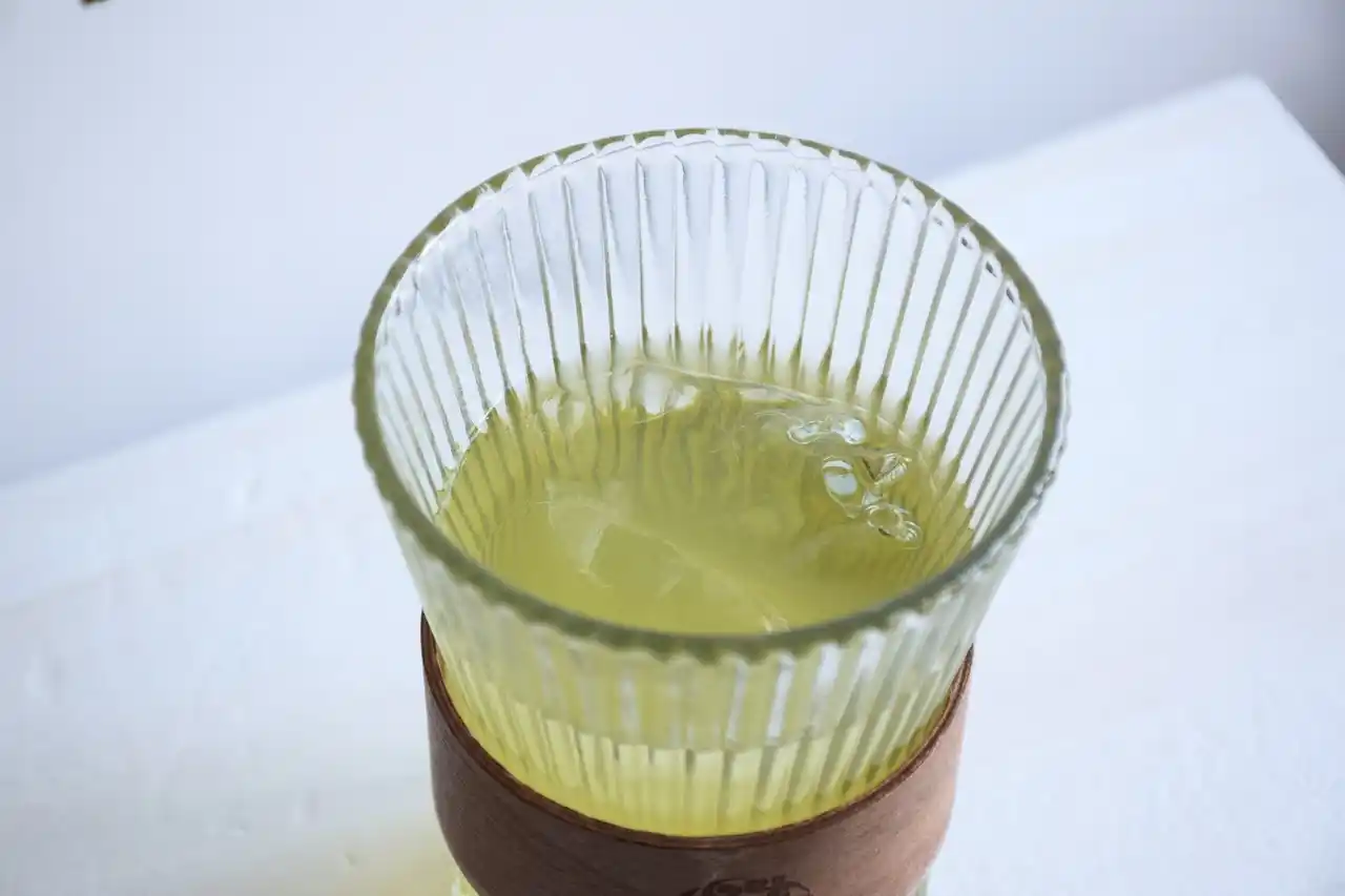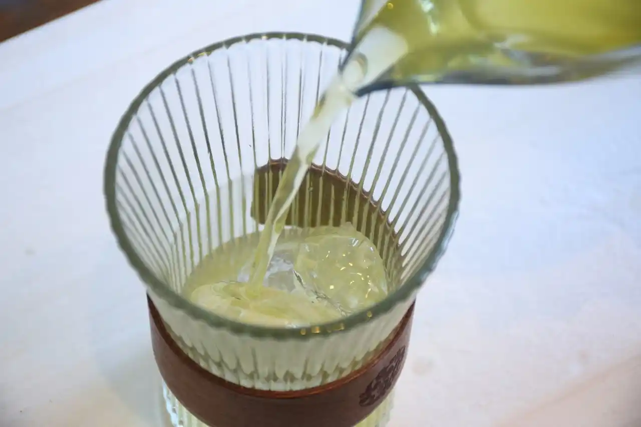 桜の葉が爽やかに薫り、茎茶の軽やかな甘さと山田錦の旨みが重なる一杯。