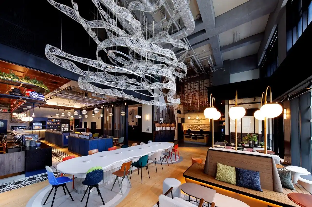 ホテルにはいわゆるロビーはなく、トークショップというロビーに代わるホテルの中心であり、顔でもあるコミュニティースペースがあります。ダイニング、カフェ、ラウンジがひと続きになった開放的な空間で、朝のモーニングからランチ、ワークタイム、バータイムまで、一日を通して思い思いに過ごすことができます。 |
