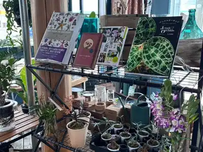 そこで、店内には多種多様な植物や、園芸用土・用品関係に加えて、お客様の知的好奇心をかき立てる書籍を取り揃えられました。栽培法や庭づくりといった園芸関係実用書は入門書から専門書まで広範に、また植物そのものへの好奇心を満たす図鑑・辞典・自然科学書なども取り入れていく予定です。 |