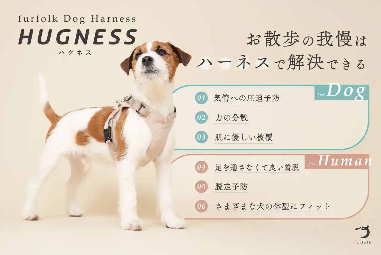 2026.4.2-30 CAPMFIREクラファン実施中!furfolk (ファーフォーク)より、愛犬の身体への負担を軽減しながら、人の使いやすさにもこだわり抜いた【HUGNESS(ハグネス)】発売。